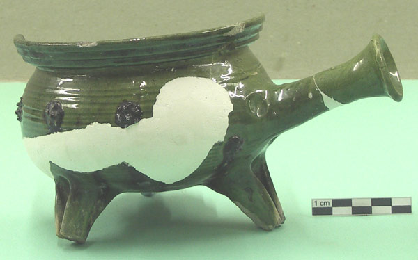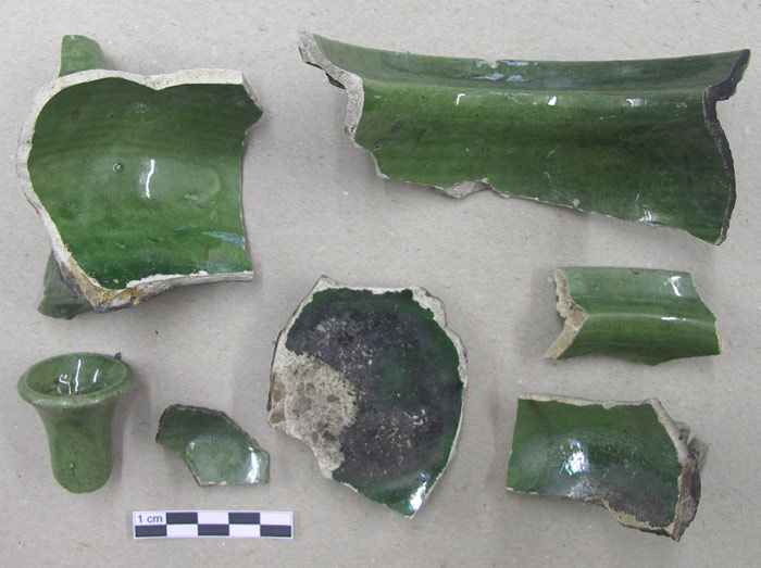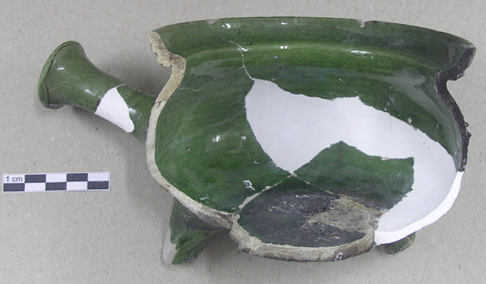 Objektbeschreibung: fragmentarisch erhalten. Auf der Drehscheibe hergestellt. Innen außen grün glasiert.